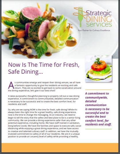 You will receive an email momentarily with a link to download your copy of “Now is the Time for Fresh Safe Dining” published by Strategic Dining Services.